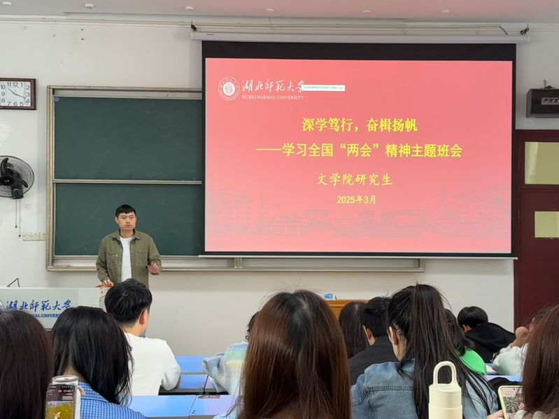 3月4日上午9时,十四届全国人大三次会议在人民大会堂举行开幕会。国务院总理李强代表国务院,向十四届全国人大三次会议作政府工作报告。班会上,围绕2025年全国“两会”的基本情况、政府工作报告等内容进行了专题传达和学习。张力指出,今年全国两会是在立足“两个大局”背景下,在“十四五”规划收官和“十五五”规划谋划开篇的关键时期召开的十分重要的会议,习近平总书记在全国两会期间的一系列重要讲话思想深邃、内涵丰富,为推动高质量发展指明了前进方向、提供了根本遵循、注入了强大动力。张力强调,作为新时代研究生,要深刻领会两会精神内涵,将个人的成长与国家的发展紧密结合起来,以实际行动践行“强国有我”的青春誓言。