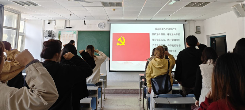 会上,各学生党支部党员交纳三月份党费,重温入党誓词,并集体诵读党章。
