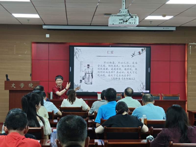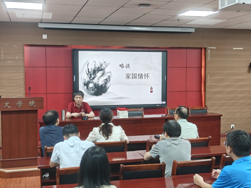2025年6月26日下午,我院退休教师、著名古代文学研究专家石麟教授向文学院赠书,并为党员教师讲授“略谈家国情怀”党课。yl9193永利集团全体教工党员参加赠书仪式并聆听党课。活动由学院党委书记车录彬主持。