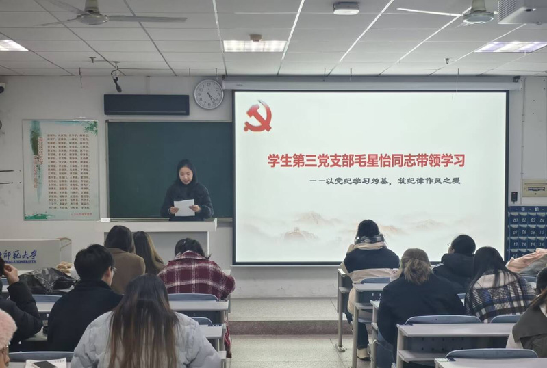 政治理论学习环节,学生党员毛星怡同志、仙志铭同志分别领学“以党纪学习为基,筑纪律作风之堤”主题内容,他们指出作为学生党员,应该紧密团结在以习近平同志为核心的党中央周围,深入学习贯彻党的二十届三中全会精神,并将其转化为实际行动,为助力冲刺攻坚全年目标任务贡献自己的智慧和力量。同时,也应以如饥似渴的求知欲深入钻研党纪党规的丰富内涵,提升自身对党纪的认知水平与理解能力,通过参加专题讲座、开展小组研讨、撰写学习心得等方式提升自身对党纪的认知水平与理解能力,为党的纪律作风建设添砖加瓦。