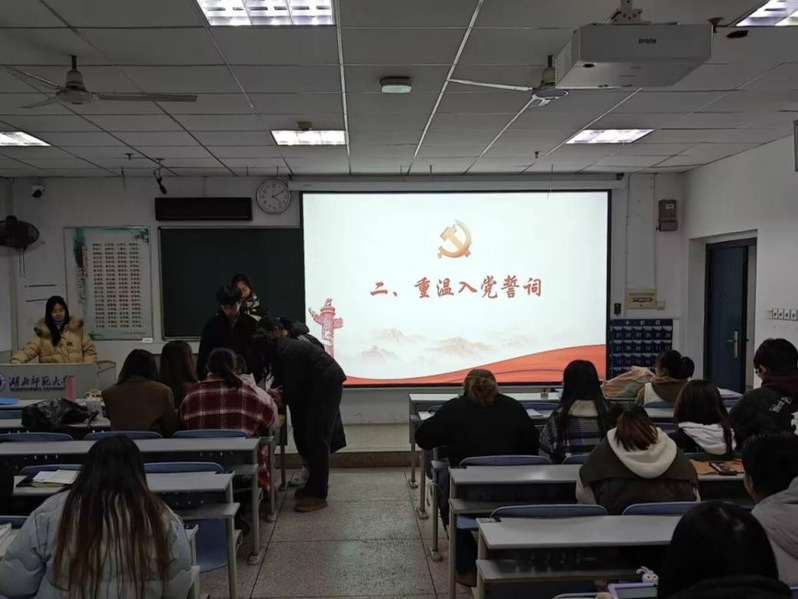 会上,各学生党支部党员交纳十二月党费,重温入党誓词,并集体诵读党章。