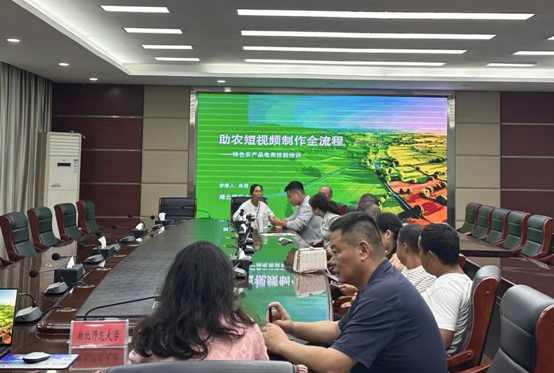 当天上午,在陈贵镇政府三楼会议室,由陈欢副教授牵头,肖萌、罗玲两位老师进行了特色农产品电商技能的培训讲解。大冶市陈贵镇水产服务中心主任周红胜,百果汇生态果园、大泉沟生态农业有限公司等16家农业经营主体负责人参与培训。