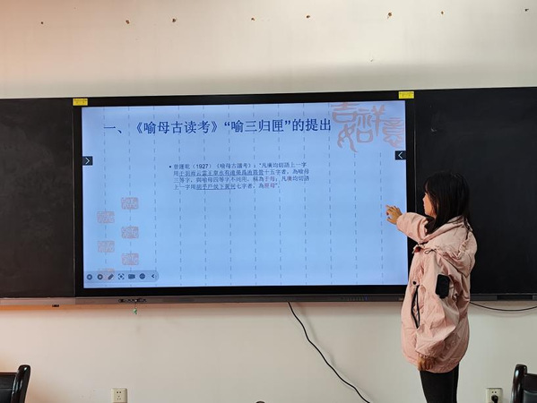 同学们的研究涉及音韵学、词汇学、语法学、方言学、社会语言学等多个维度,为汉语本体研究注入新活力。杜静怡的《宁晋方言中的词缀“个”》,以宁晋方言为研究对象,细致考察方言中 “个” 作为词缀的语法功能、使用场景及语义特征。李芳秋的《“喻四归定”研究述评》,聚焦“喻四归定”这一音韵学命题,梳理历代学者的研究成果,分析其学术争议点。刘温静的《“喻三归匣”研究述评》,对“喻三归匣”这一音韵学重要议题的研究历程、观点分歧与学术价值进行系统梳理,为后续该领域研究厘清脉络。毛明格的《“智”“慧”考辨:历时演变与功能对比研究》,从历时角度追溯“智”“慧”二字的字形、词义演变,同时对比二者在不同历史时期的语法功能,深入剖析这对同义词的历时发展轨迹。梁德珊的《“问题是”:交互主观性与礼貌原则的多维剖析》,从语用学角度出发,分析“问题是”在交际中的交互主观性体现,以及其在遵循礼貌原则方面的语用策略,为汉语话语标记研究开辟了新的分析路径。梁艺馨的《亲属称谓“兄弟”的泛化表现及成因》,将研究目光投向社会语言学领域,通过大量语料分析“兄弟”从亲属称谓到社会称谓的泛化现象,探讨其背后的社会文化与语言认知成因。