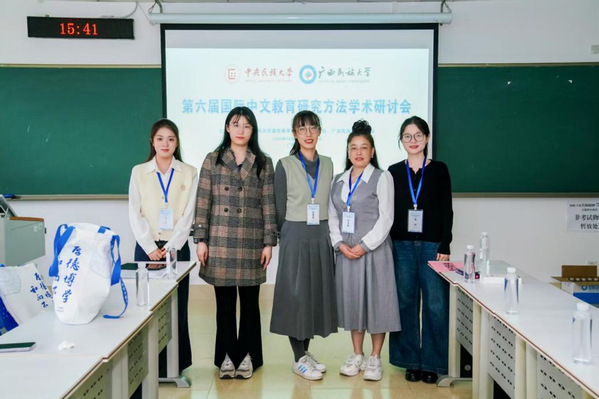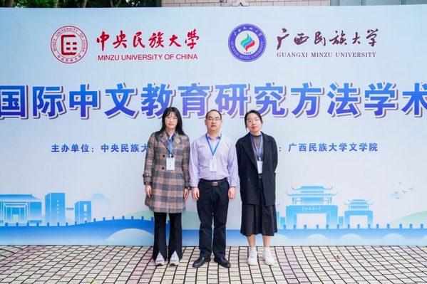2025年11月1日至2日,第六届国际中文教育研究方法学术研讨会在广西民族大学举行。我院车录彬老师及25级研究生胡馨、丁小岚受邀参会,并分别在小组汇报交流。