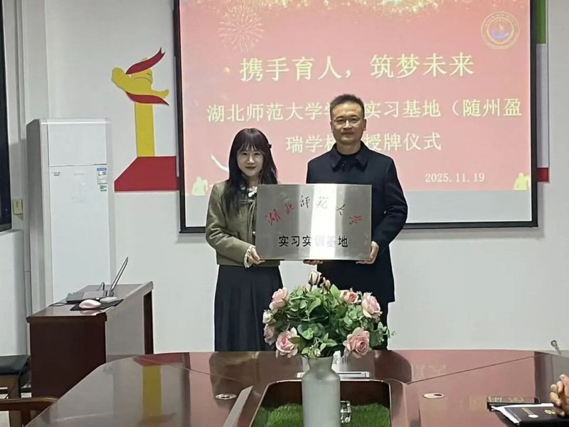 19日上午,检查组继续前往随州盈瑞实验高中进行实习检查。实习检查座谈会由盈瑞实验高中詹敏主任主持,随州盈瑞学校总校长钟克云、后勤校长陈永仕、盈瑞高中教学副校长杨光宝以及各学科指导老师代表出席会议。钟克云对两校能够达成长久合作关系表示认可和感谢。随后,沈月与陈永仕共同完成授牌仪式。仪式后,沈月与实习生们亲切交流,鼓励学生们认真完成后续的实习任务。