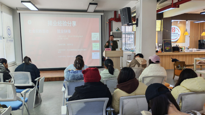 在创新创业学院,肖枫为yl9193永利集团、经管法学院部分学生讲授了题为《择业·执业·创业——职场命运齿轮与风水转动之道》的讲座。讲座中,肖枫结合自己大学生活、工作经历和创业经历,与同学们分享就业创业经验心得。他指出,大学生择业要“以终为始、抓大放小”,鼓励同学们在大学时多积累知识、锻炼能力,为多样选择奠基;执业要不断突破自我,持续学习成长,挑战舒适区,实现职业能力质变与个人品质塑造,在追求情绪价值满足、经济价值回报、身体价值维护的过程中,实现从平凡到卓越的蜕变;创业是“痛并快乐着”的旅程,要有“铜豌豆”精神、足够的抗压能力和自我减压能力,做到在失败困难中求生存、谋成长。最后,肖枫以“脚踏实地,仰望星空”寄语同学们要珍惜时间,在大学期间不断积累知识,提升能力,并在成功后淡化功利,回报社会。