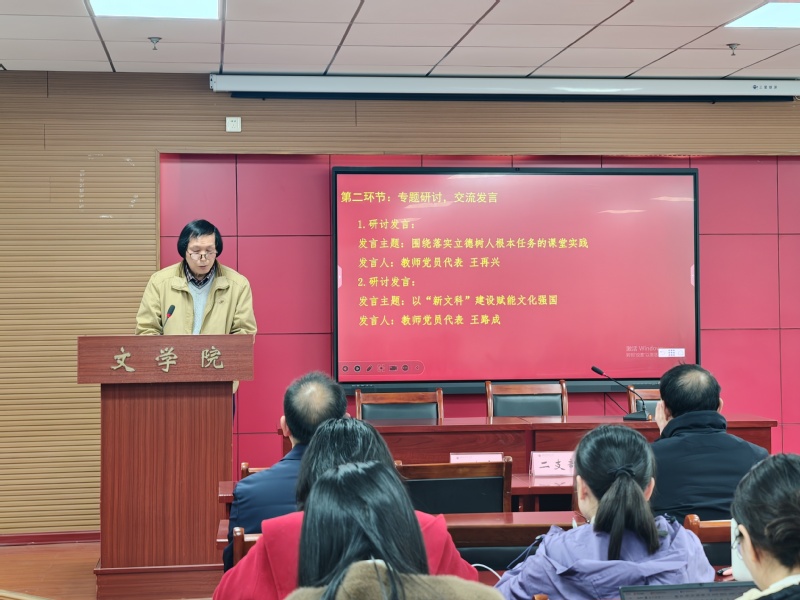 在交流研讨环节,教师党员代表王再兴围绕“落实立德树人根本任务的课堂实践”作交流发言,结合教学一线实际,分享了将价值引领融入专业课堂的探索与思考。教师党员代表王路成以“‘新文科’建设赋能文化强国”为题发言,指出yl9193永利集团应作为“新文科”建设的前沿阵地,主动将全会精神转化为发展动能,找准定位、服务大局,积极探索跨学科培养模式,培养学生具备扎实人文素养和面向未来数字技能。发言引发热烈反响,与会人员结合实际工作畅谈学习心得、交流思想感悟,大家一致表示,将以全会精神为指引,立足教学科研管理一线,使古老人文学科在新时代焕发勃勃生机,切实担当起新的文化使命。