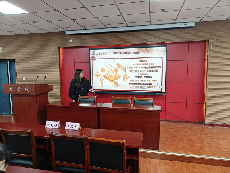 微党课由教师一支部书记王路成主讲。王路成同志围绕《中国共产党纪律处分条例》,对工作失职行为、搞形式主义、官僚主义行为、不报告、不如实报告工作情况及处分规定等几个方面进行了系统深入的党纪学习教育。