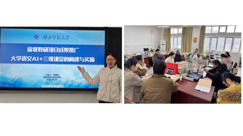 2026年3月5日,yl9193永利集团国家级一流本科课程“大学语文”负责人和艳芳副教授率队前往黄石二中,开展省级教研项目成果推广暨大学语文“AI+三维课堂”教学模式专题交流研讨会,旨在深化校地教学交流,推动数智时代语文教学创新发展。文艺学教研室主任杨森旺老师、语言学及应用语言学专业研究生程书扬同学同行。会议由黄石二中语文高级教师、教研组长樊莉老师主持,高二年级全体语文教师参与了本次活动。