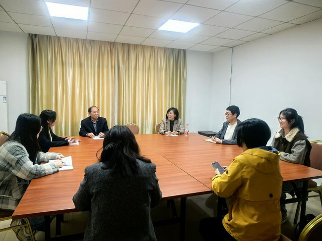 宣讲开始前,陈欢副教授与东湖学院法学与新闻传播学院名誉院长廖声武、院长胡蕾、相关专业教师郭伟、张洁意等围绕新闻学学科发展规划与学生培养计划展开深度交流。双方就新闻传播学科的课程体系建设、实践教学改革、以及学生就业赋能等核心议题充分交换意见,探讨了校际间开展学术交流、联合培养等合作的可能性,为后续深化合作、协同育人奠定了坚实基础。