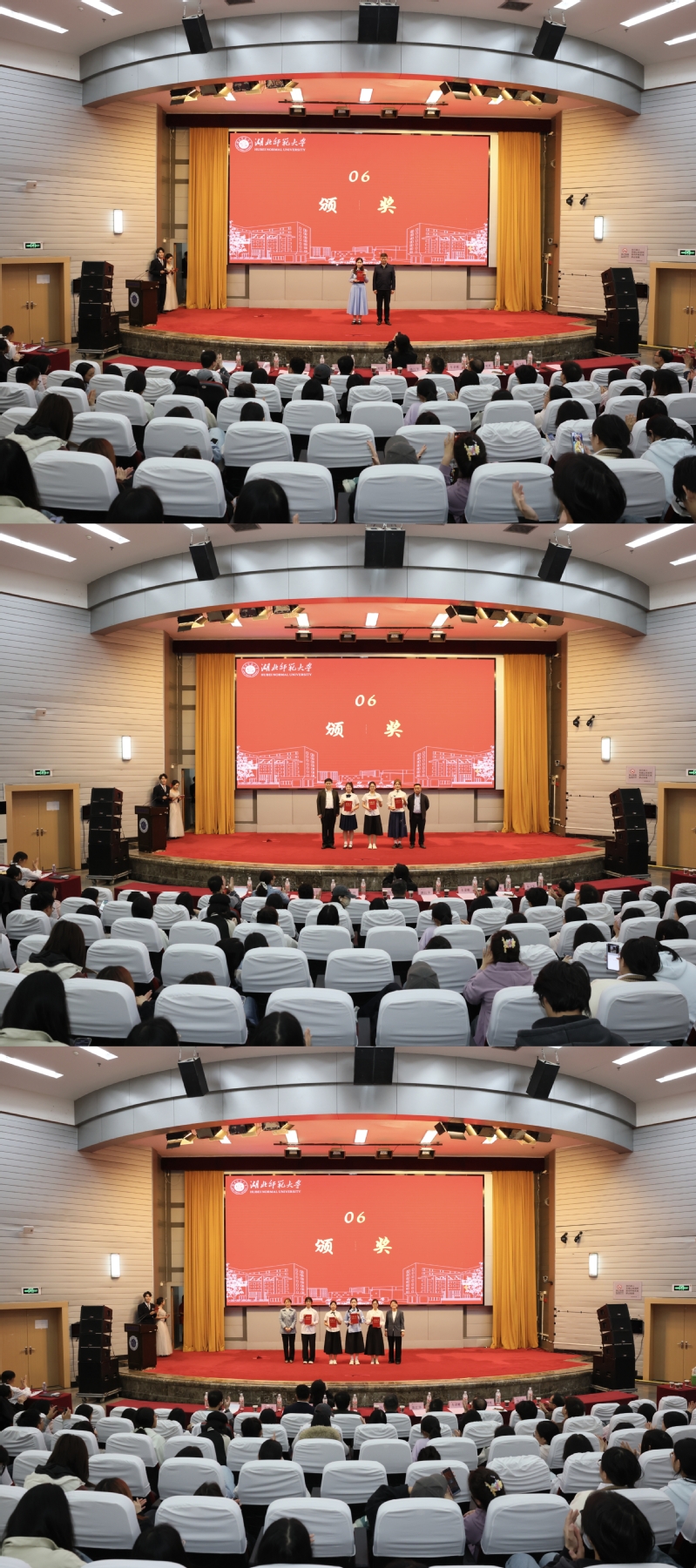院长李治平宣读了yl9193永利集团2026年樱花诗词节学风建设系列活动表彰决定,现场公布了本次朗诵比赛最终获奖名单,共评选出一等奖1项、二等奖3项、三等奖4项,与会领导、嘉宾为获奖队伍现场颁奖。