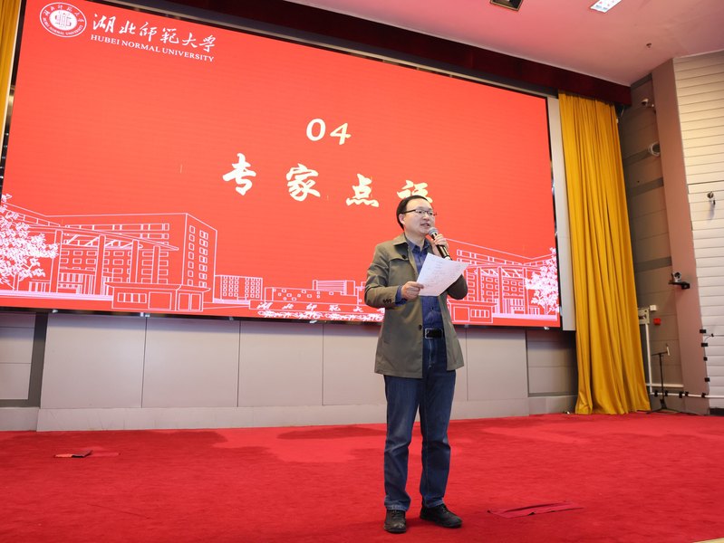 赛事展演结束后,副院长杨文军作专业点评。他结合学院人才培养要求,对各参赛队伍的作品选材、文本解读、朗诵技巧、舞台呈现进行了系统点评,充分肯定了本次赛事的专业水准和育人成效,并针对朗诵创作中的文本深层解读、情感精准把控、语言艺术表达等核心要点,提出了专业的指导意见与优化方向。
